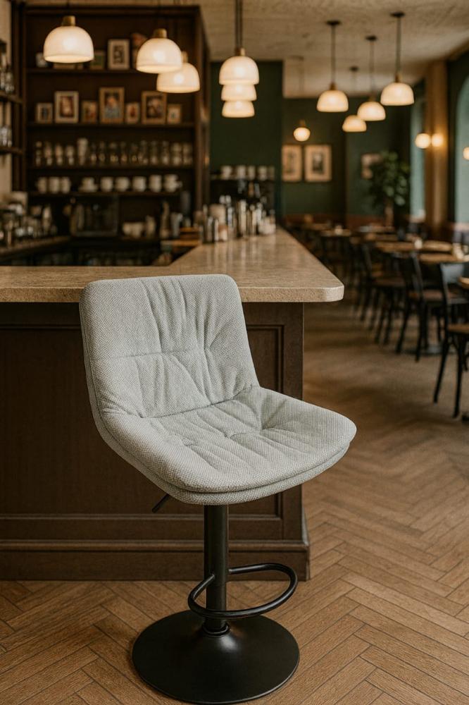 كرسي بار قاعدة حديدملبس بأجود انواع الاقمشة من نوع الكتانالمقاس -الارتفاع -80العرض -46الون -الرمادي الفاتح